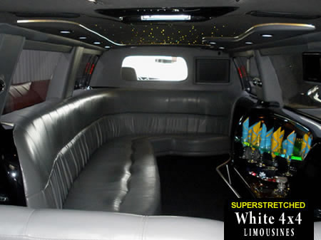 We have Hummer limos for hire in Bath in a choice of head turning colours and designs - how about a silver Ford 4x4 for 16 passengers? Or a funky pink 4x4 'Hummer limo'? Also available are two superstretched 4x4s in black and white paint schemes - ideal for stag nights, birthday parties, proms or a night on the town! All cars in our fleet are customised and stretched by the best coach builders in the United States and come with no shortage of features to make your journey as smooth and luxurious as possible!