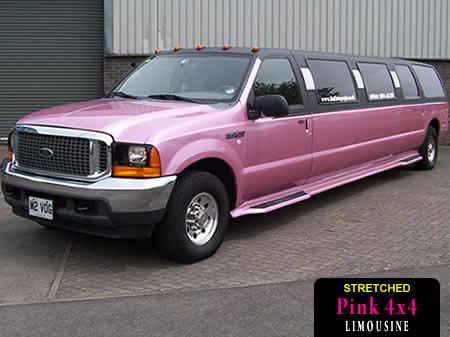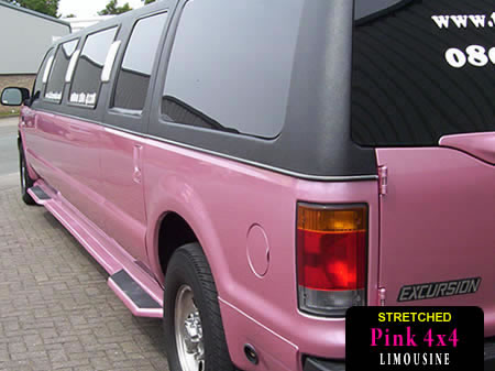 Our amazing Excursion is superstretched and licensed for a maximum of 16 guests per journey. Like its smaller sister, this pink limousine will get everyone's attention as you arrive at your favourite nightspot or venue! Inside this stunning car you'll find colour coordinated leather seats and fittings! Pop open the bubbly, sit back and relax with us as you enjoy the ride to your favourite bar or nightclub. Onboard entertainment is provided courtesey of a top-of-the-range CD player and surround speaker system. Add to this decorative lights and a mirrored ceiling and - presto! - a nightclub on wheels! Great for hen parties, girl's parties, birthdays and kids parties!